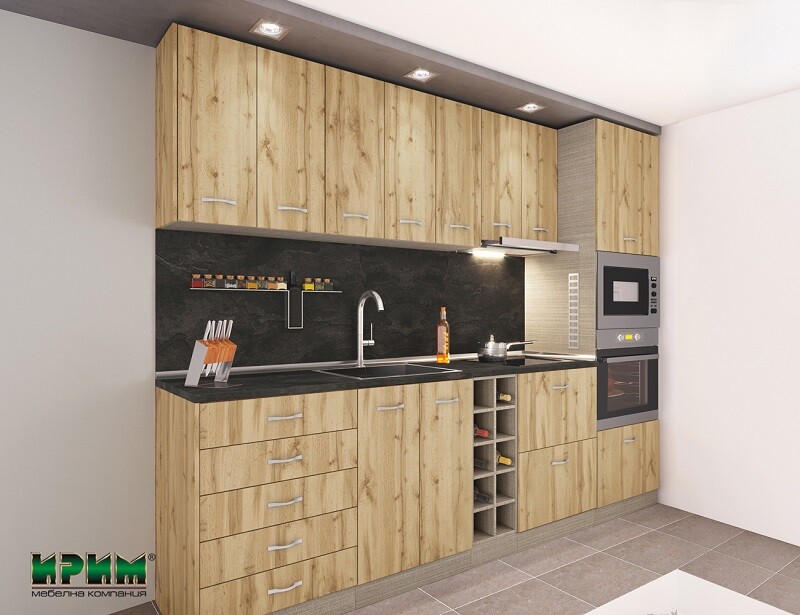 Модулната кухня Сити 9154 се отличава със стилна дървесна визия, модерно излъчване и практично функционално разпределение. Изработена от висококачествено ПДЧ 16 мм с лице в цвят Дъб Дакота и корпус Мока, тя осигурява здравина, устойчивост и комфорт при ежедневна употреба. Комплектът включва разнообразни долни и горни модули с плавно затваряне, възможност за вграждане на мивка, фурна, микровълнова и аспиратор, както и удобни чекмеджета и практична бутилиера за оптимална организация на пространството. Термоплотът в декор Камък антрацит допълва съвременната визия и придава завършен елегантен вид. Отличен избор за създаване на функционална, просторна и модерна кухненска среда.