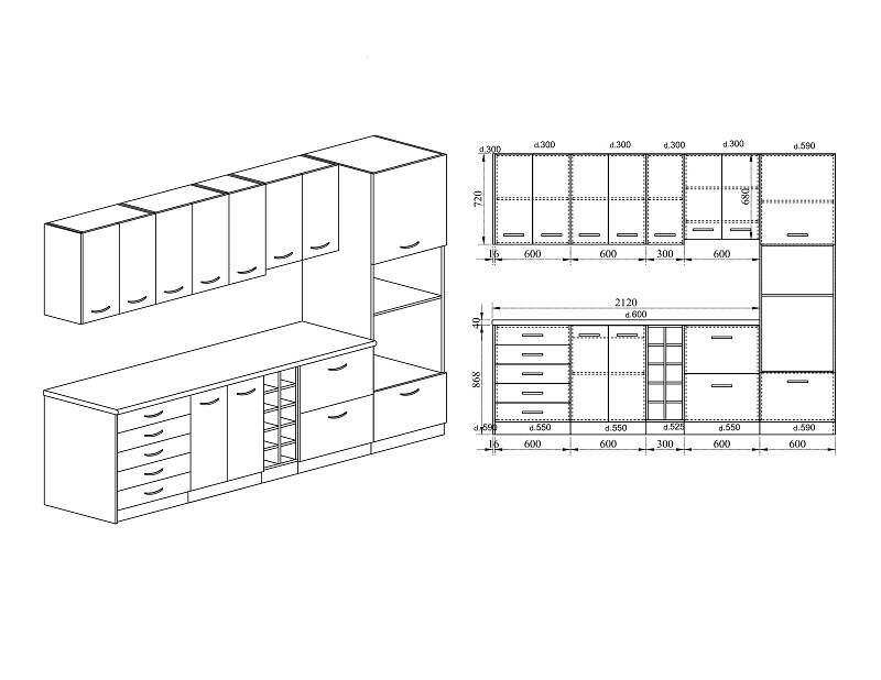 Дълбочина на шкафове под плот 55см.