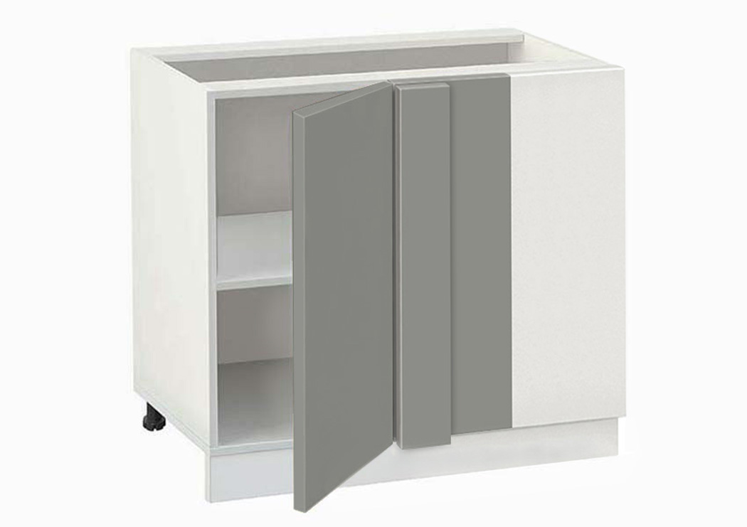 Долен модул ъглов с рафт Мат 1001 Бял - Сив