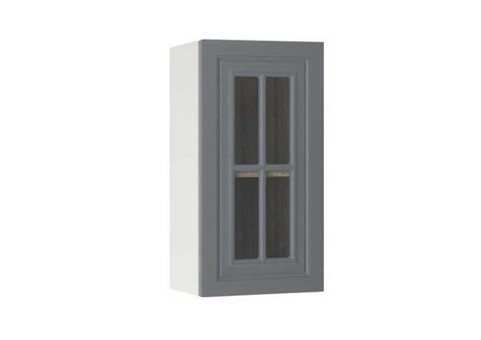 Горен модул с витринна врата и рафт Винтидж 40В Бял - Велвет