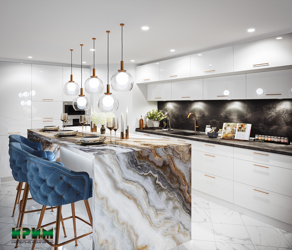 Кухня Сити 961 впечатлява с изчистен модерен дизайн и контрастна елегантност . Съчетанието на бял гланц и каменен антрацитов плот придава луксозна визия и усещане за простор . Модулната система предлага плавно затваряне, възможност за вграждане на уреди и мивка и практично разпределение за максимален комфорт. Изработена от висококачествен МДФ , тя е идеален избор за модерна, функционална и стилна кухня.