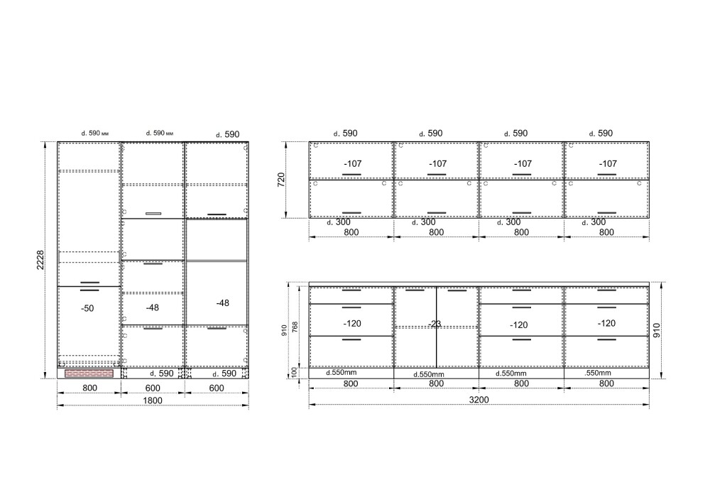 - Четири модул с две хоризонтални врати БФ-Бяло гланц-05-107 - 80/59(30)/72см.